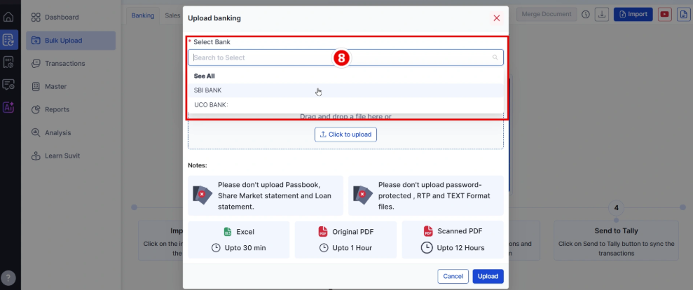 Supported Formats: Upload only bank statements in the PDF format, directly downloaded from the official bank website, to ensure clarity and compatibility.