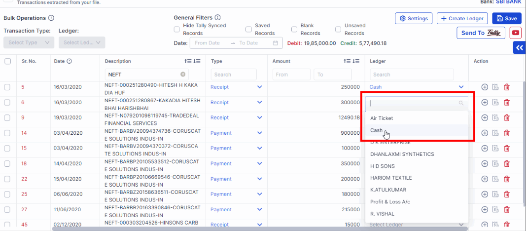 Using Vyapar TaxOne’s interface, review extracted transactions and assign them systematically to appropriate ledgers. Consistent ledger naming conventions across clients improve efficiency and reduce errors.