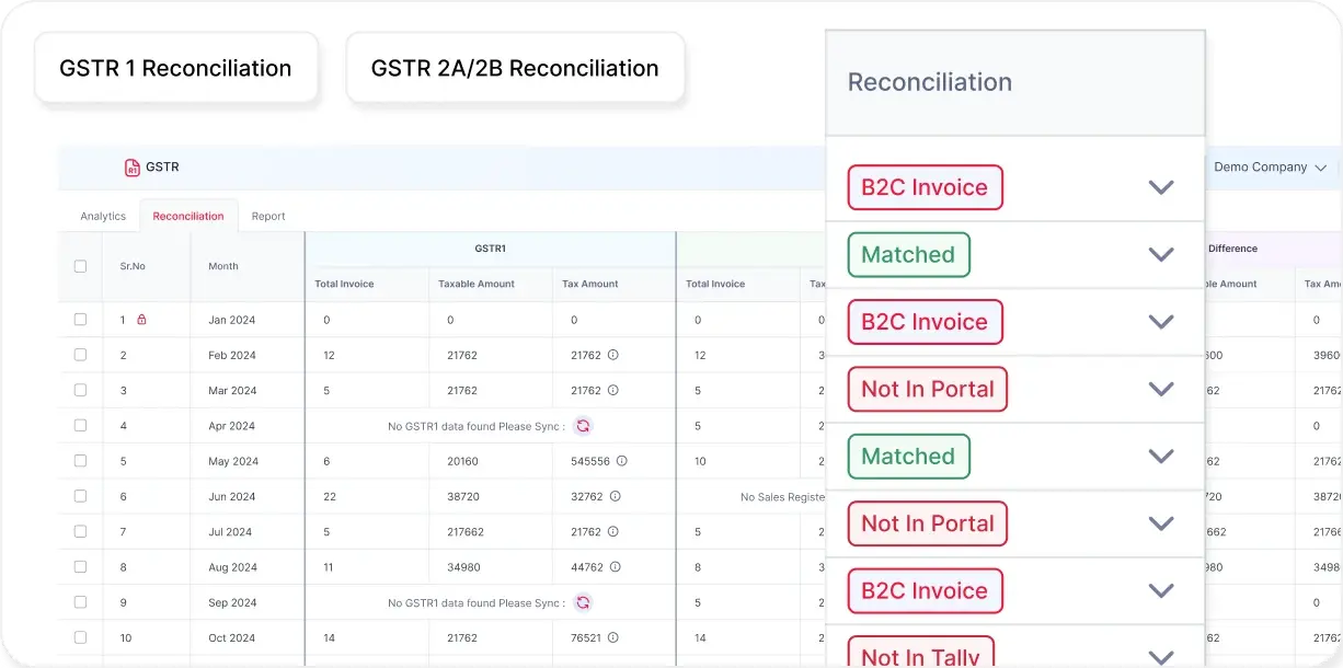 Yes, Vyapar TaxOne integrates seamlessly with popular accounting tools like Tally & Vyapar, making it easy to synchronize data for efficient GST reconciliation.